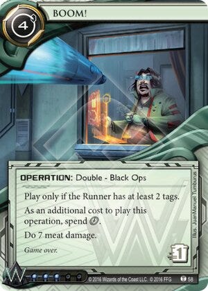 These days, tags are a lot less brutal. Even before NSG took over stewardship of the game, the value of a tag was already changing. A single tag could easily be a kill while Scorched Earth was around, but by the end of the FFG era it was replaced with High-Profile Target or BOOM!, putting the threshold for a flatline at two tags.
